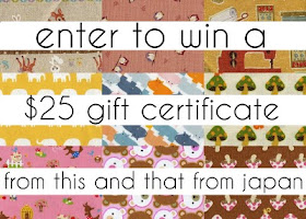 What? $25 gift certificate from This and That from Japan. They sell tons and tons of super cute crafting supplies including fabrics, Japanese craft books, trims, clay molds and more!