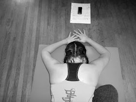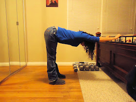 This last set of 5 pics is just to show the motion you're doing. You definitely don't need to pause in 5 spots. It's one smooth motion with a yoga strap or other long flexy thing between your hands. Go over the top and back - then back over the other direction. Backwards then forwards. Maybe 3 times is good - anything more is overkill.