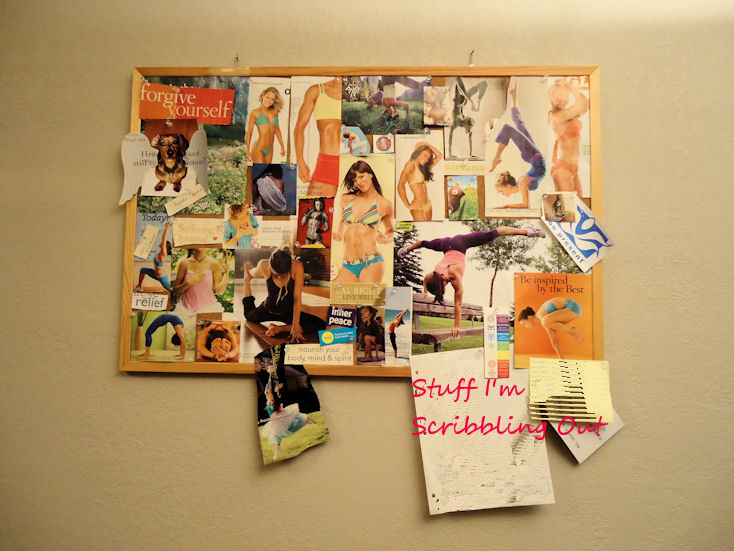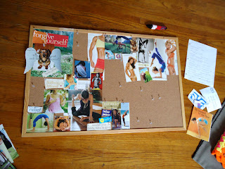 One thing that isn't really a New Year thing for me, but this year just happened to take place around New Years - is the creation of my Inspiration Board. This is simply a giant corkboard with pictures and words to act as reminders of things I want to accomplish, states of mind I want to achieve, and people who inspire me. It also holds the occasional "random thing I liked". I've been keeping an Inspiration Board for years and just recently re-decorated it. Something I do when I get very "blah" about looking at it - however often that may occur (not very often). Here's a picture by picture of the process.