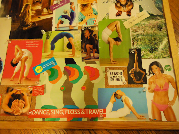 Chop out pictures and words of everything you see that really interests/inspires you. A lot of these won't even make it into the final board - but you'll want choices to work with. Get creative with shapes, colors, etc. Make sure you don't chop out chunks of articles you still want to read or other pictures you like better.